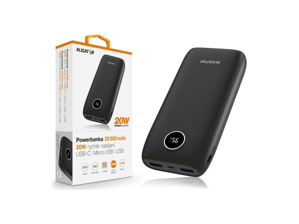 ALIGATOR Powerbanka Power Delivery 20W, rychlé nabíjení, 20 000 mAh, černá