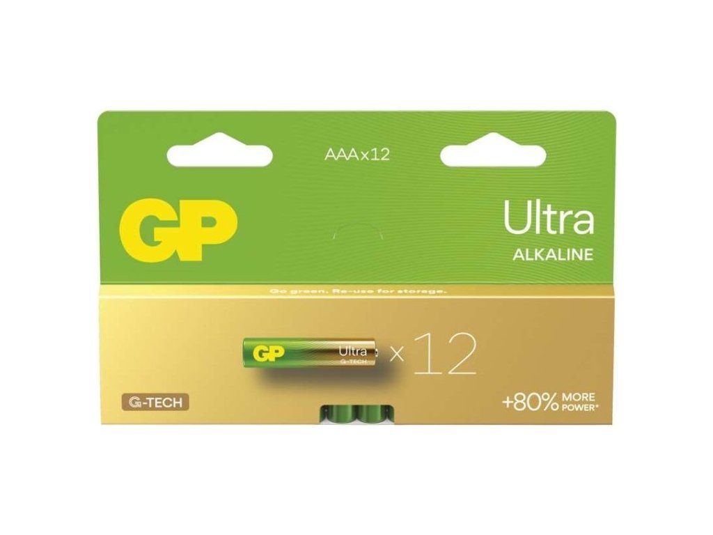 Alkalická baterie GP Ultra AAA (LR03), 12 ks