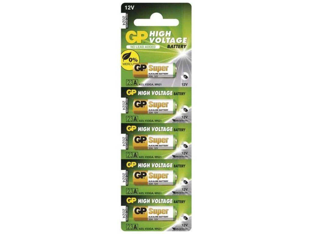 GP 23AE Super 12 V 5 ksTyto speciální alkalické baterie díky jedinečné konstrukci poskytují řádově vyšší napětí. Zároveň jsou uzpůsobeny pro dlouhotrvající výkon. Jejich hlavním zaměřením jsou dálkové ovladače, hračky a jiná elektronická zařízení. Jejich doba skladování je až 3 roky a pracovní teplota 0 °C až +45 °C.