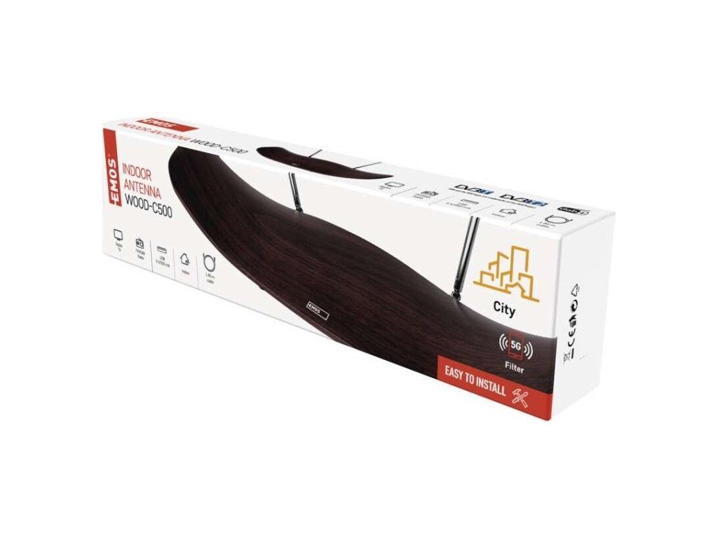 Anténa pokojová CITY WOOD-C500, DVB-T2, DAB, FM, filtr LTE/4G/5G