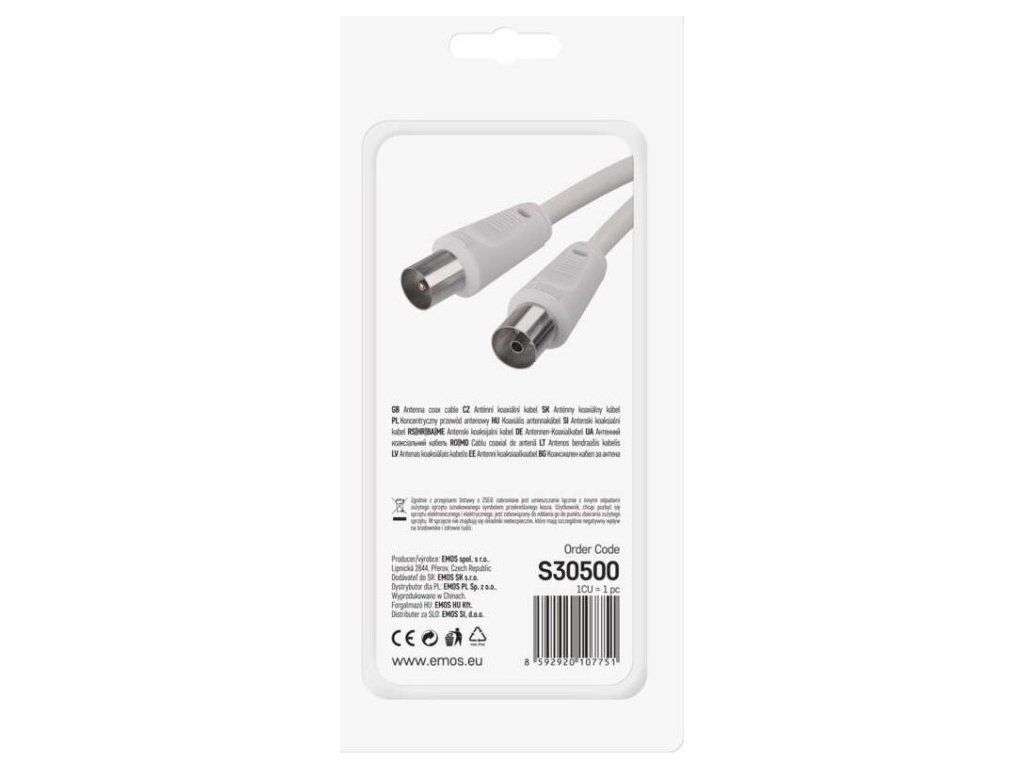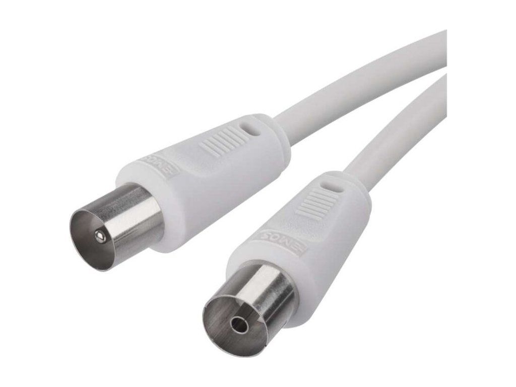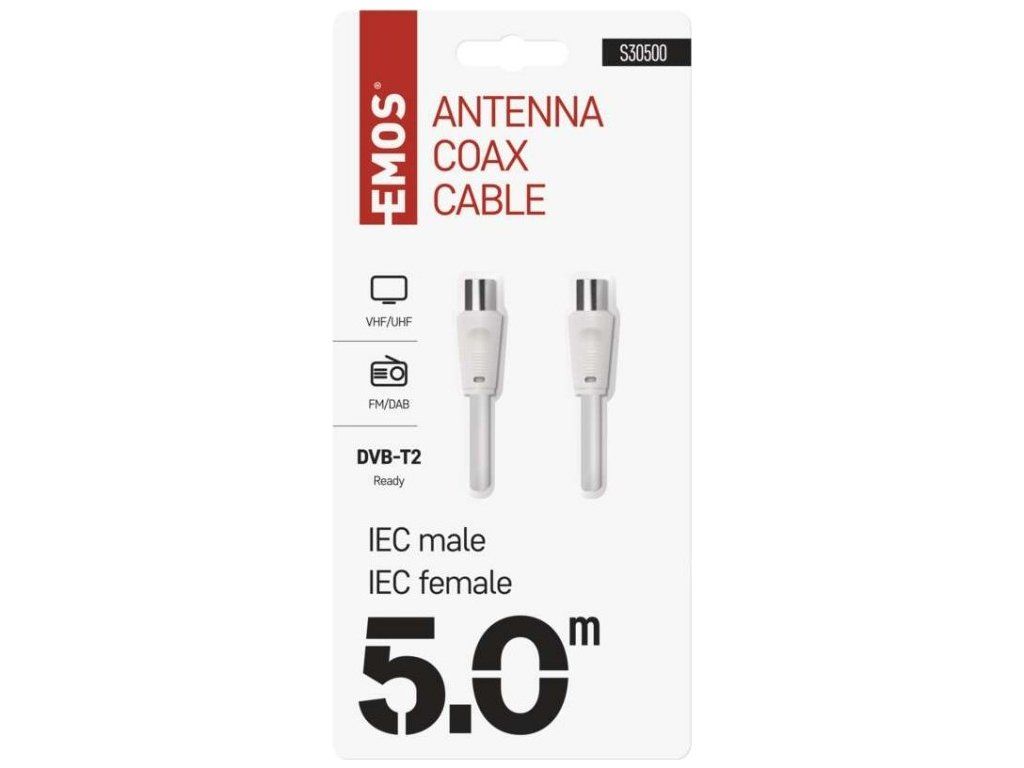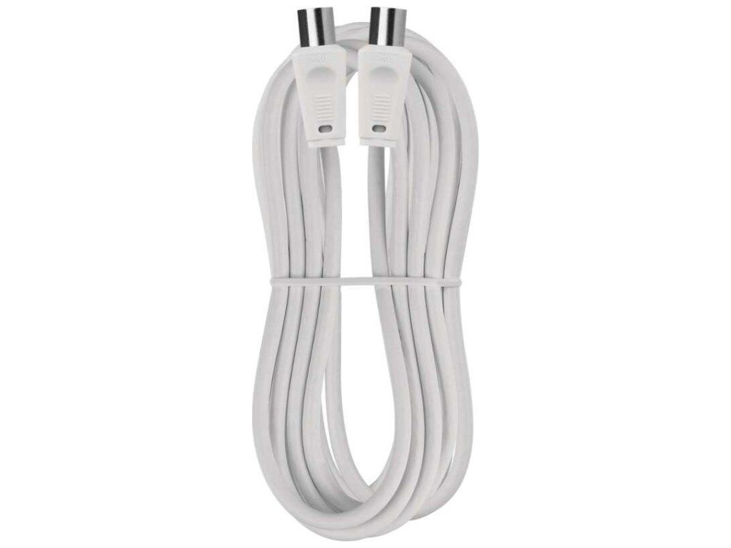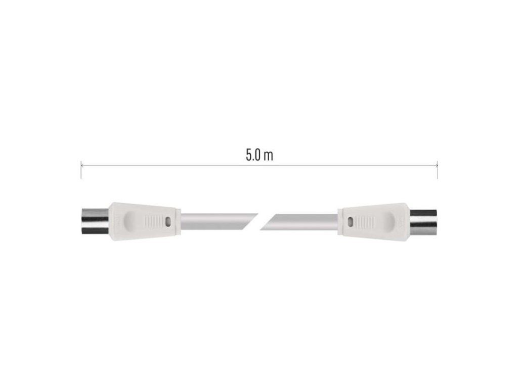 Anténní koaxiální kabel s vidlicí a zásuvkou IEC. Kabel má dvojité stínění pro redukci elektromagnetického rušení. Délka kabelu je 5 m. Koaxiální kabel je vhodný pro SAT, DVB-T, ANT, DECODER, FLAT TV a TV.