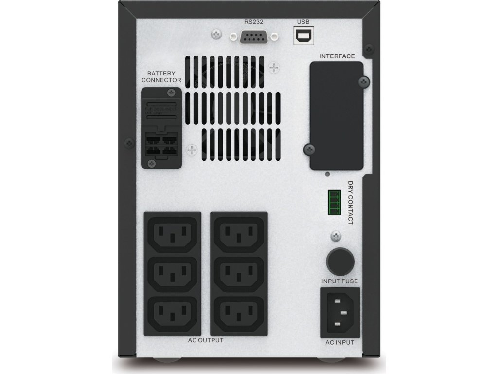 Výstupní přípojky: (6) IEC 320 C13 (Záložní provoz na baterie)