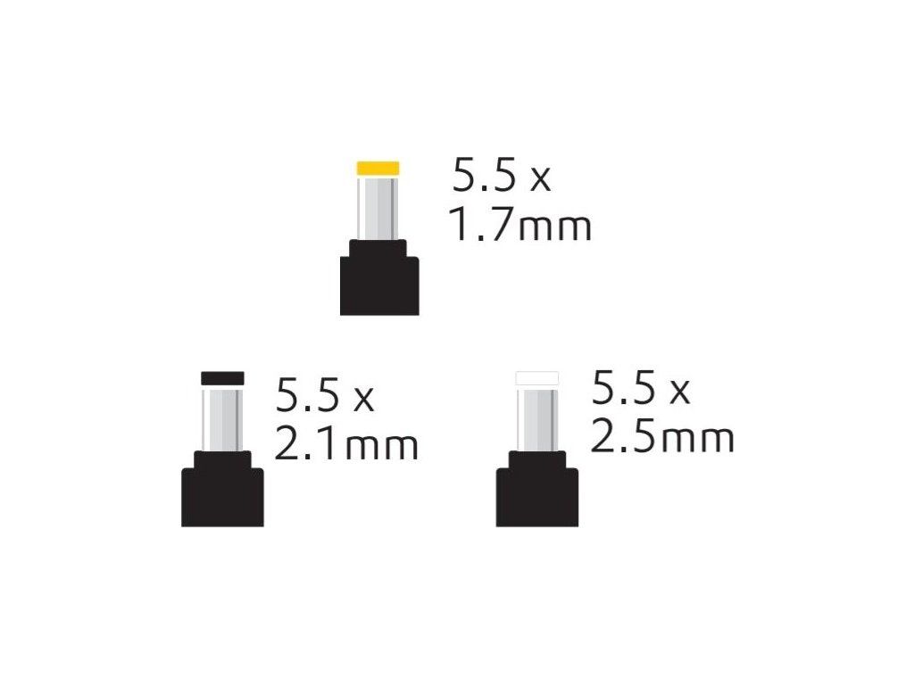 Výstupní zásuvky/konektory: 4 ks (1,7 až 2,5 mm | 2,5 až 1,7 mm | 2,1 až 2,5 mm | 2,5 až 2,1 mm)