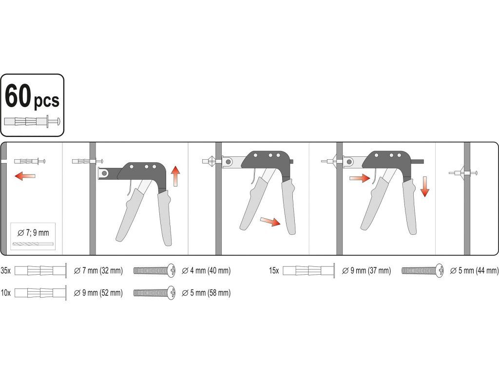 Aplikační kleště + Molly hmoždinky (kotvy) do sádrokartonu, sada 60 ks