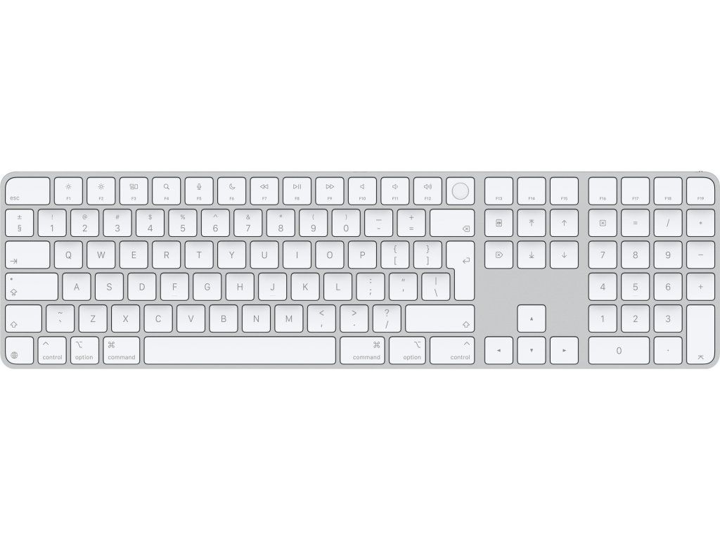 Magic Keyboard s Touch ID a číselnou klávesnicí pro Macy s čipem Apple – anglický (mezinárodní) – bílé klávesy