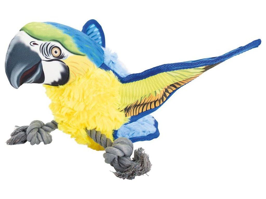 Ara Ararauna papoušek na laně 35 cm, robustní hračka pro psy, žlutá/modrá, HipHop Dog