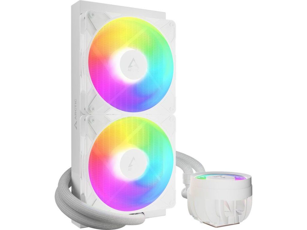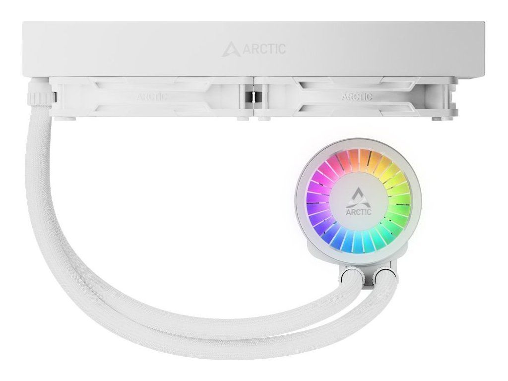 VRM ventilátor se aktivně postará o chlazení a podporuje stabilní výkon i v rámci přetaktování. Konstrukční technologie Intel Contact Frame rovnoměrně rozkládá tlak, a tak podporuje delší životnost procesoru. Dvojice 140mm ventilátorů ARCTIC P14 Pro A-RGB pracuje tiše při nízkých otáčkách a v případě potřeby to roztočí do vysokých obrátek. Radiátor dokáže pojmout dostatek kapaliny na to, aby s přehledem zvládal vysokou teplotní zátěž. Připojen je prémiovými hadicemi, které jsou odolné a vydrží opravdu dlouho.
