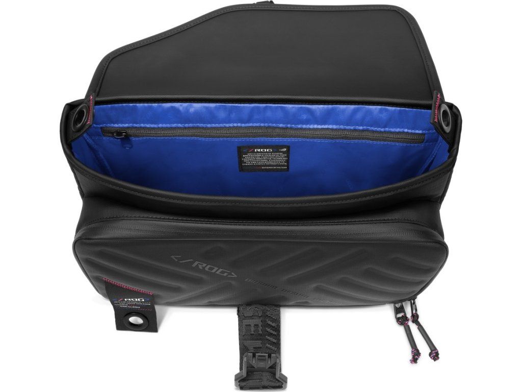 Promyšlené vnitřní uspořádání usnadňuje organizaci a rychlý přístup k vybavení. Elegantní černý design se hodí ke každému outfitu, zatímco vlastní ROG monogramy a značení na vnějším materiálu zajišťují, že herní DNA značky je vždy viditelná.