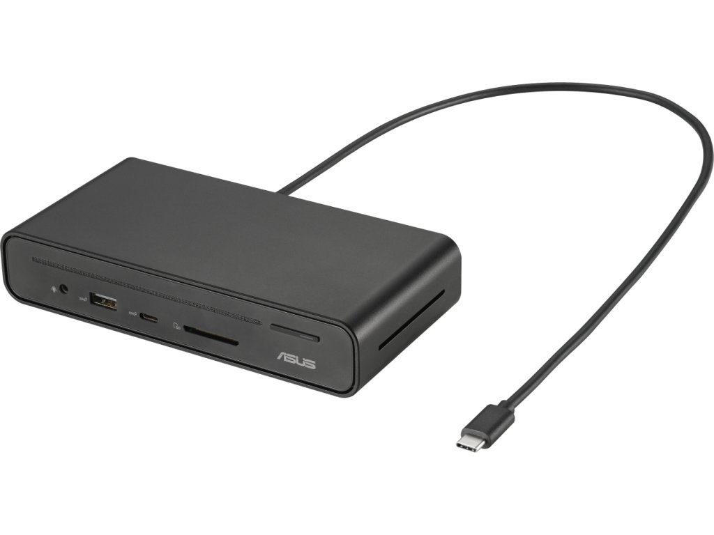 Kompaktní dokovací stanice ASUS DC300 Triple Display USB-C, která výrazně rozšiřuje možnosti připojení notebooku a nezabere příliš mnoho místa na vašem stole. Umožní vám připojení k síti, periferním zařízením a efektivní činnost v rámci multitaskingu na více monitorech. Kromě toho disponuje také integrovanou čtečkou SD karet. Dokovací stanice ASUS DC300 Triple Display USB-C podporuje až tři 4K monitory, takže výrazně rozšíříte pracovní plochu.