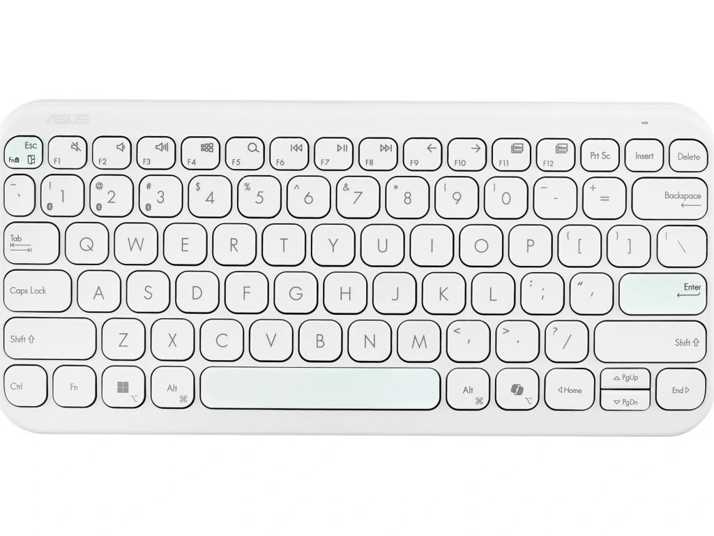Klávesnice ASUS Marshmallow KW100 nabízí známé rozložení kláves jako u notebooku, které umožňuje okamžitou orientaci. Nechybí ani dvě systémová přepínací tlačítka, která umožňují plynule přepínat mezi režimy Windows, ChromeOS, MacOS, iOS a iPadOS, takže uživatelé mohou pracovat efektivněji.