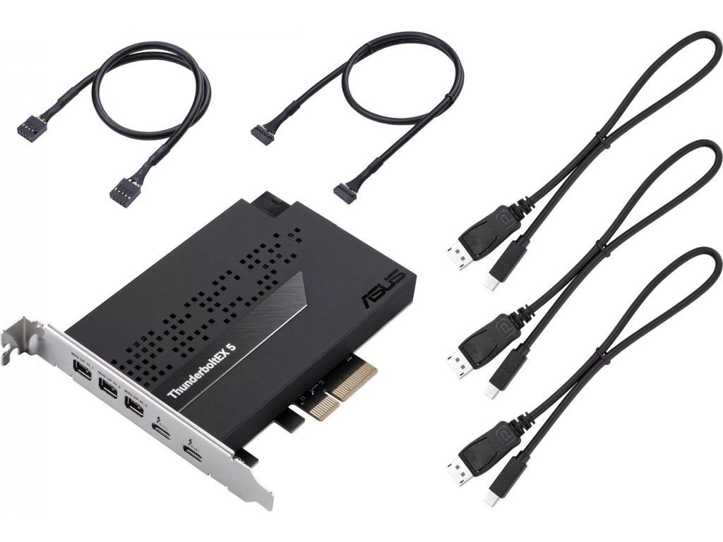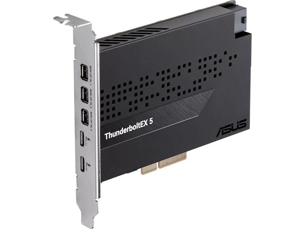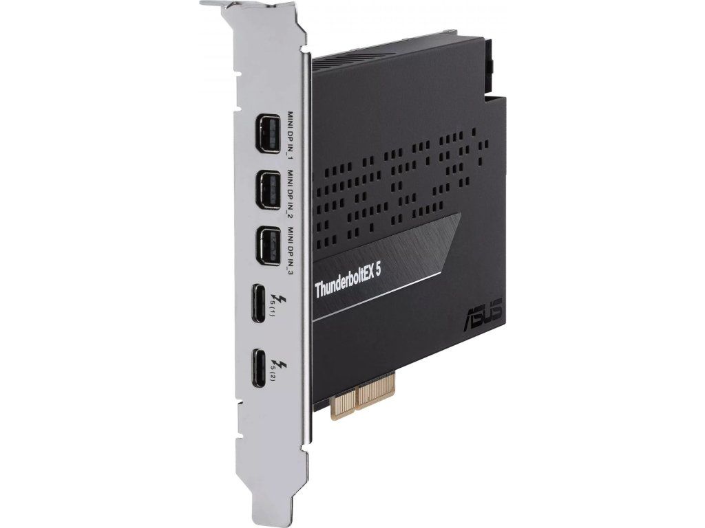 Karta ASUS ThunderboltEX 5 nabízí šířku pásma až 120 Gb/s Thunderbolt™ 5, podporu DisplayPort™ 2.1 s kompatibilním GPU, kompatibilitu s USB4® a navíc podporu až pěti zařízení Thunderbolt™.