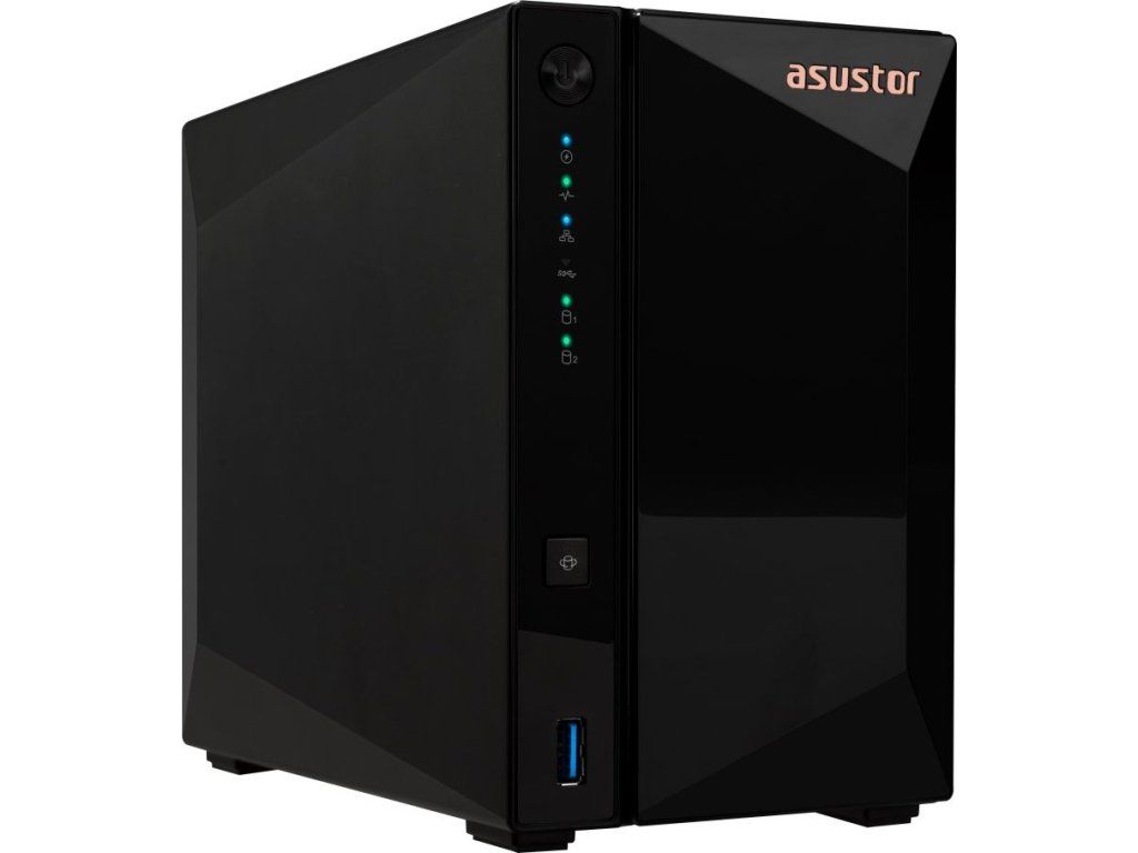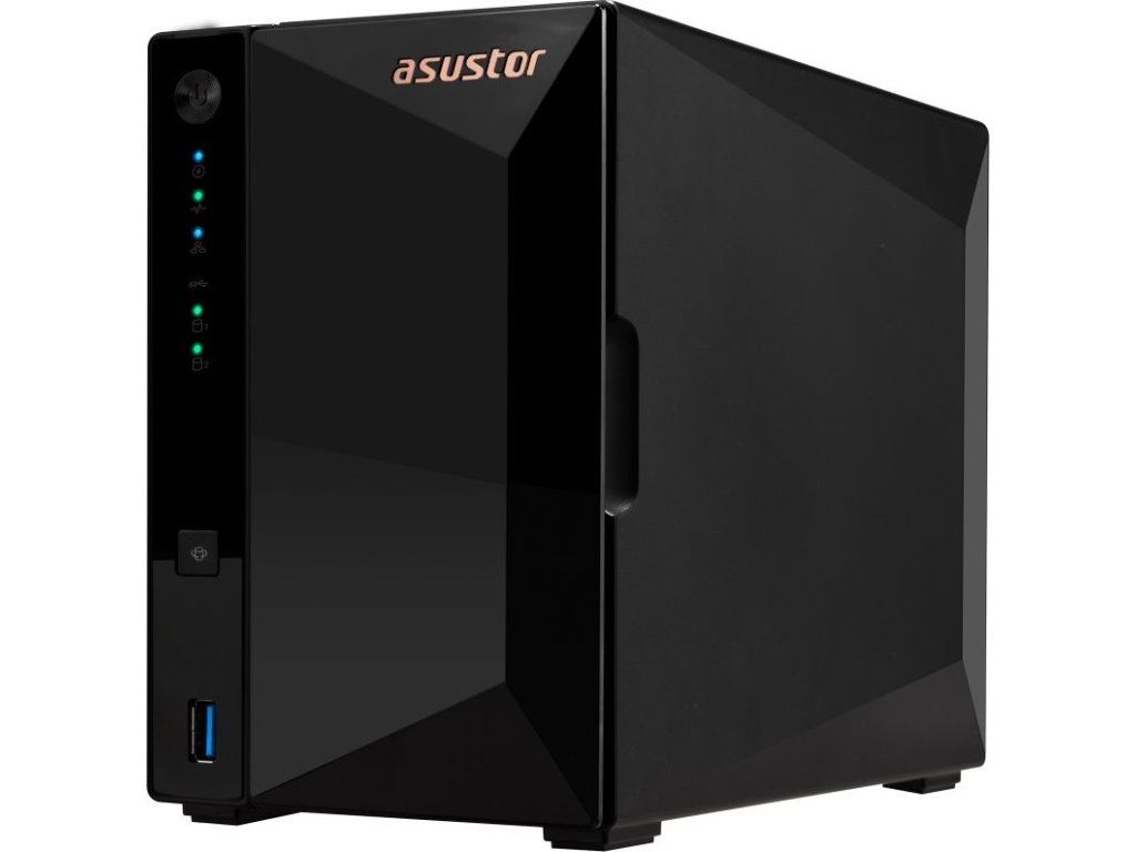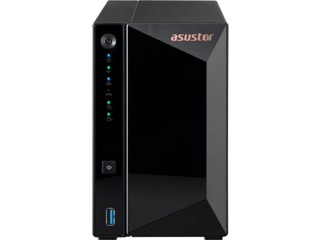 Asustor Drivestor 2 Pro Gen2 (AS3302T v2)Cenově efektivní NAS ideální pro domácí použití nabízí atraktivní šasi, které z něj činí elegantní doplněk každého prostoru. Zařízení pohání čtyřjádrový procesor 1,7 GHz s pamětí DDR4 o velikosti 2 GB. Síťové připojení zajišťuje jeden 2,5 GbE RJ-45 port a k dispozici jsou také tři USB konektory. Pro ukládání dat jsou připraveny dvě šachty na disky o velikosti až 18 TB. Operační systém ADM nabízí intuitivní uživatelské prostředí pro snadnou správu a sdílení souborů napříč platformami. Samozřejmostí je 256bitové šifrování AES. Tento model je vybaven zdrojem s výkonem 65 W.