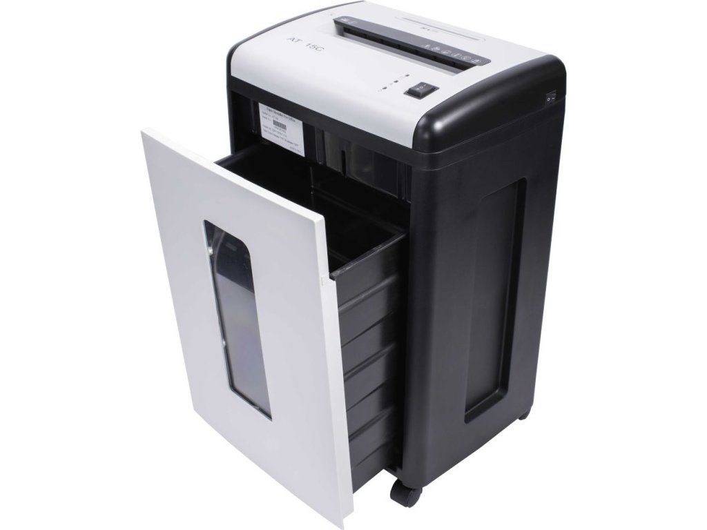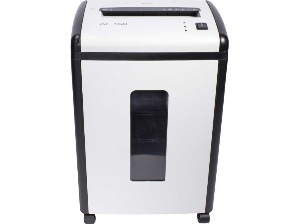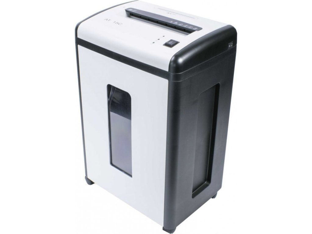 AT skartovačka AT-15CSkartovací stroj atraktivního designu pro malé kanceláře. Je vhodný pro skartaci dokumentů o šířce až 230 mm. Stroj je standardně vybaven automatickým systémem start/stop, zpětným chodem, tepelnou pojistkou motoru proti přehřátí a signalizací přeplněného koše. Příležitostně lze skartovat sešívací sponky a kreditní karty. K dispozici je i oddělený vstup pro skartaci CD. Odpadní nádoba o objemu 22 litrů je vybavena průhledným okénkem pro optickou kontrolu. Praktická pojezdová kolečka usnadňují manipulaci.