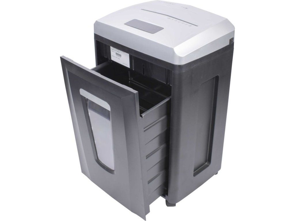 AT skartovačka AT-18-SMCKvalitní skartovací stroj ergonomického designu, vhodný pro skartaci dokumentů o šířce až 230 mm. Snadné ovládání je zajištěno dotykovým panelem. Stroj je standardně vybaven automatickým systémem start/stop, zpětným chodem, tepelnou pojistkou motoru proti přehřátí a signalizací přeplněného koše. Příležitostně lze skartovat sešívací a kancelářské sponky a díky samostatnému vstupu i kreditní karty a CD. Lehce vyprázdnitelná odpadní nádoba má objem 22 l. Praktická pojezdová kolečka usnadňují manipulaci.