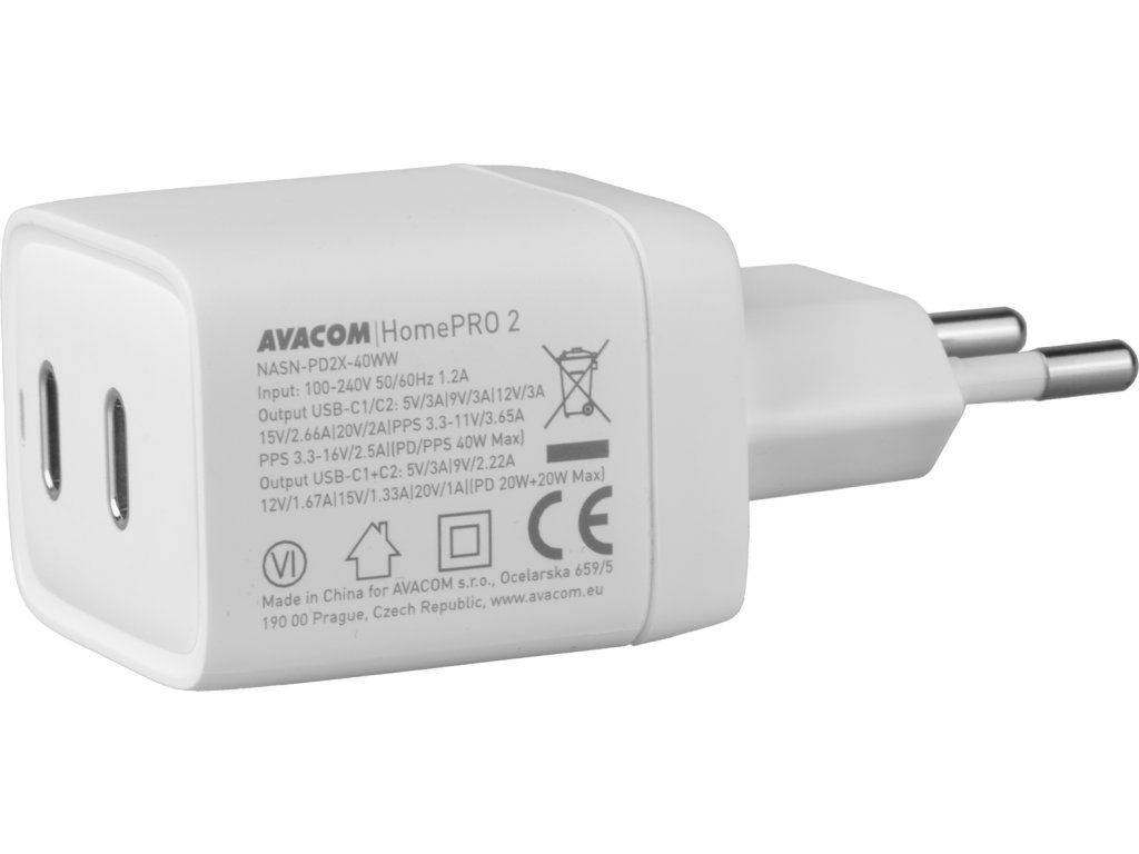 AVACOM HomePRO 2 síťová nabíječka s Power Delivery 40W se dvěma USB-C výstupy