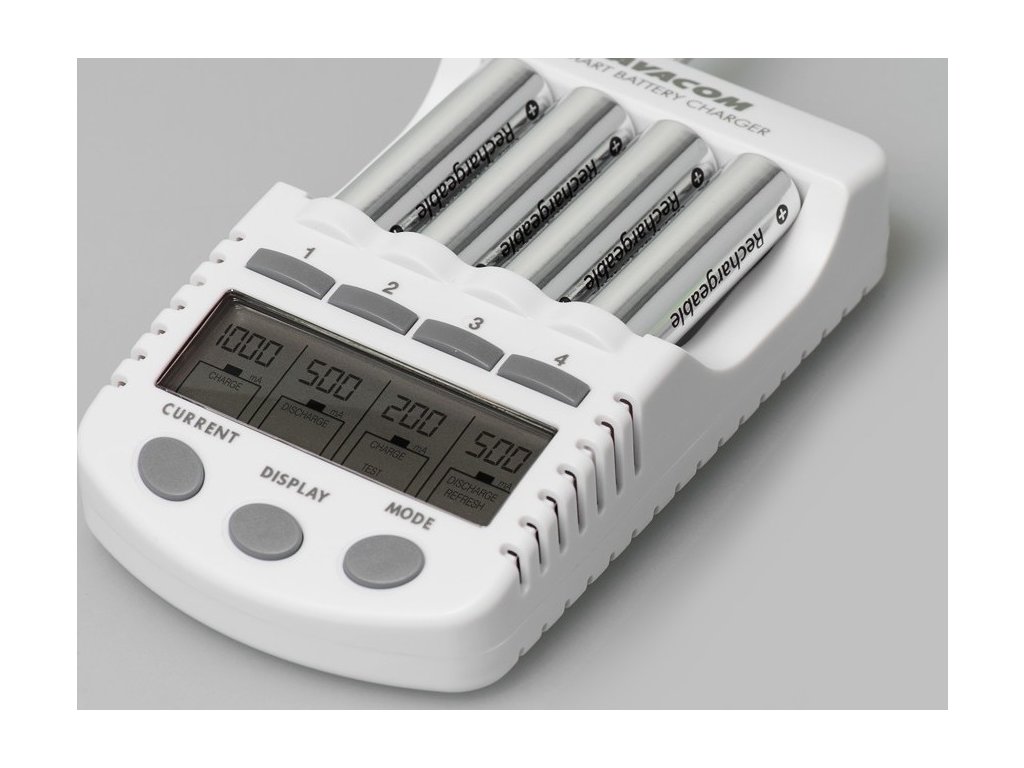 Inteligentní čtyřkanálová nabíječka tužkových AA a mikrotužkových AAA baterií. Nabíjí Ni-MH a Ni-Cd baterie. Nabíjecí proud 200, 500, 700, a 1000mA.