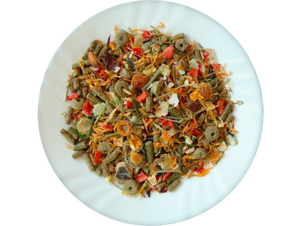 - složení: vedlejší výrobky rostlinného původu (6% bylinky), 16% zelenina (mrkev, petržel, pastyňák), obiloviny, minerální látky, oleje a tuky
