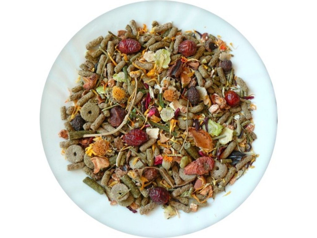 Krmivo je speciálně navrženo, aby bylo stejně vyvážené jako přirozená potrava v přírodě. Obsahuje přírodní vitamíny. Krmte dle potřeby. Doplňujte o zelené krmivo, sušené pícniny, čerstvé ovoce a zeleninu. Zajistěte dostatek čerstvé pitné vody.Složení: vedlejší výrobky rostlinného původu, obiloviny, zelenina, ovoce, minerální látky, oleje a tuky. Deklarované jakostní znaky: hrubý protein 13%, hrubá vláknina 13%, hrubé oleje a tuky 3,3%.