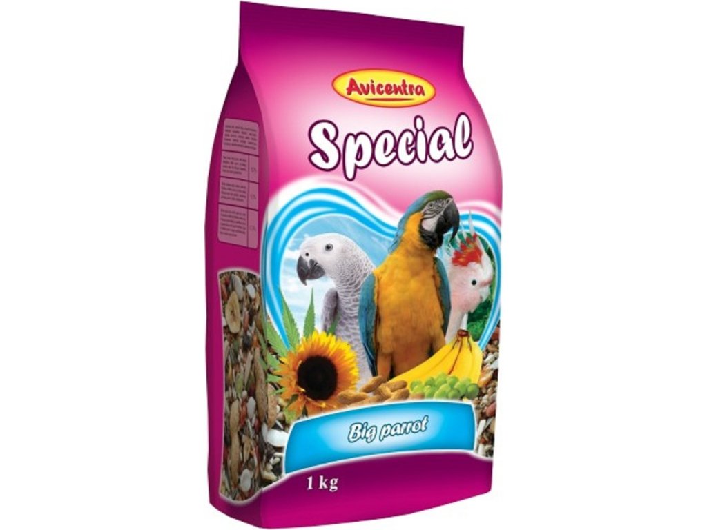 Složení: slunečnice (bílá, žíhaná), safrol, oves bezpluchý, pohanka, burské ořechy, čirok (bílý, červený), hrachové vločky, oves (žlutý, černý), dýňová semena, rozinky, konopné semeno, kukuřice, kukuřičné vločky, paddy rýže, extrudované granule s ovocem, banány, svatojánský chléb, pšenice.Deklarované jakostní znaky: hrubý protein 15,2%, hrubá vláknina 9,7%, hrubé oleje a tuky 17,5%, vlhkost 13%Krmivo pro amazoňaky, žaky, ary, kakadů a další velké papoušky. Doplňujte o čerstvé ovoce, zeleninu aj. Pro lepší trávení podávejte říční písek, nebo grit. Zajistěte dostatek čerstvé pitné vody. Staré zbytky krmiv pravidelně odstraňujte.