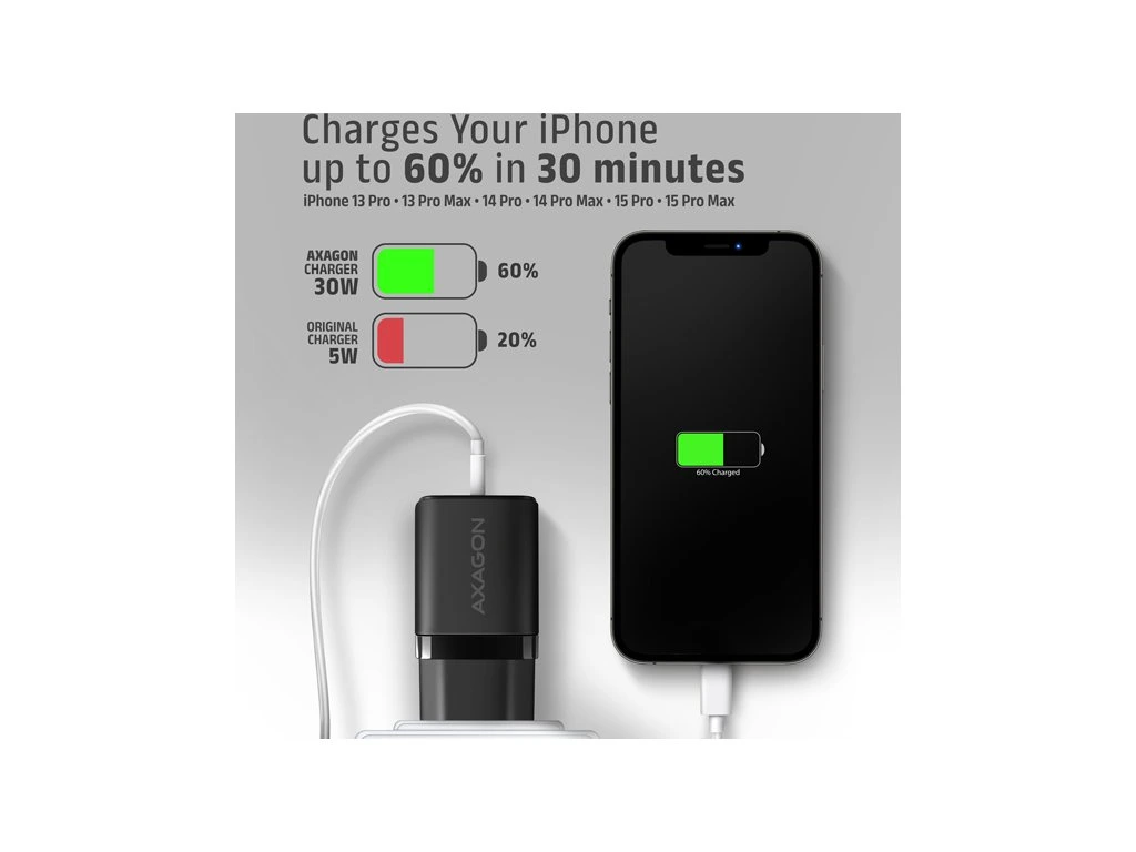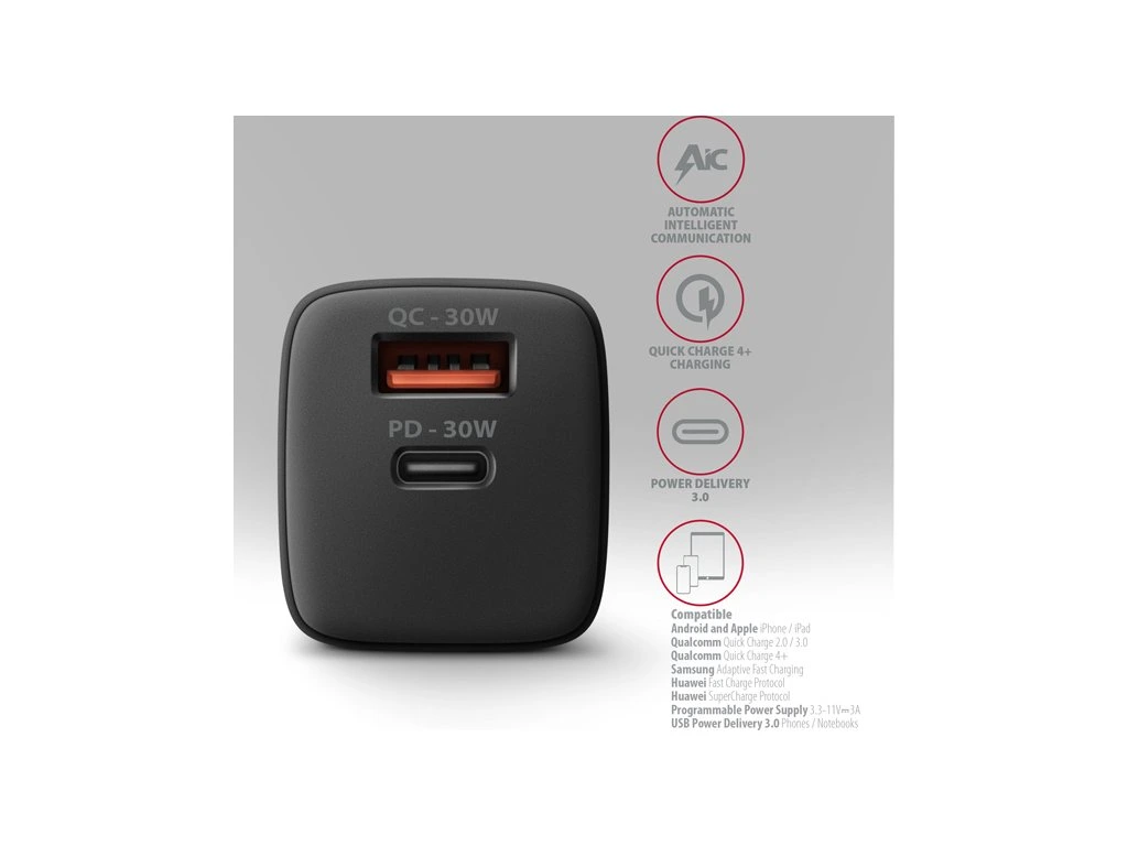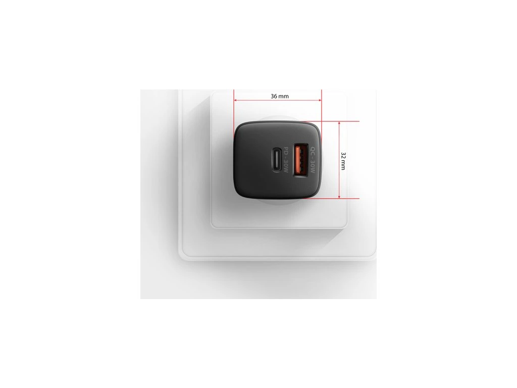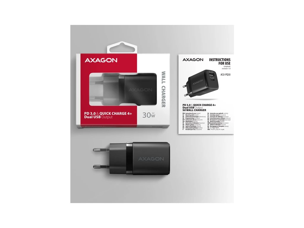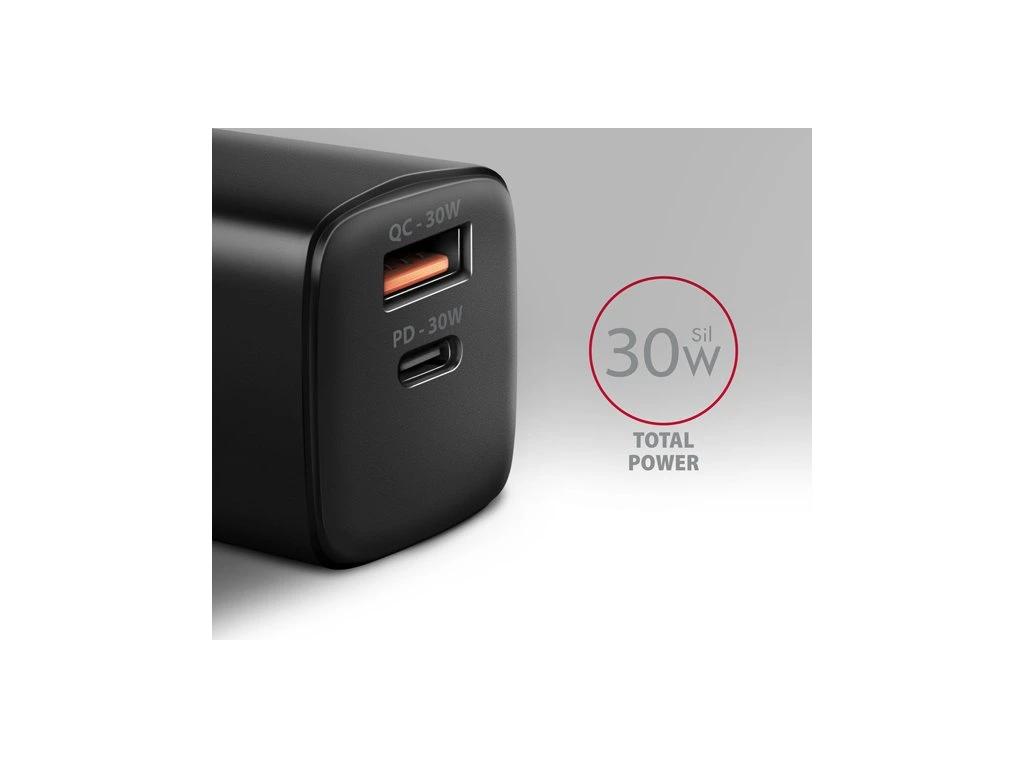 AXAGON ACU-PQ30, Sil nabíječka do sítě 30W, 2x port (USB-A + USB-C), PD3.0/PPS/QC4+/SFC/AFC/Apple