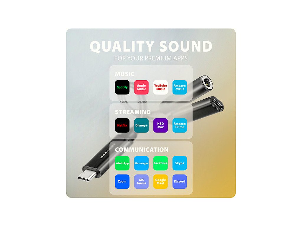 Díky DAC převodníku si s ADA-HCPD můžete vychutnat hudbu ve vyšší kvalitě než pomocí standardního sluchátkového výstupu vašeho notebooku. Dobře také poslouží jako náhrada nefunkční původní zvukové karty v notebooku a nahradí tak sluchátkový výstup nebo vstup pro mikrofon. Výhodou je také možnost připojení mikrofonu nebo headsetu pro komunikační služby WhatsApp, Messenger, FaceTime, Skype, Zoom, MS Teams, Google Meet, Discord, a podobné. Můžete ho využít i pro propojení vašeho mobilního zařízení s AUX výstupem ve vašem automobilu.