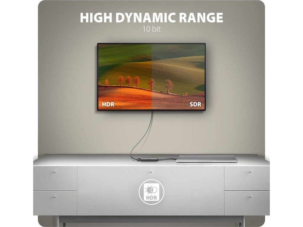 Tento kompaktní hardwarový převodník nevyžaduje žádnou instalaci a zajišťuje vynikající obraz až do rozlišení 8K/60 Hz Ultra HD. Podpora 8K rozlišení vám umožní sledovat videa v úchvatné kvalitě, zatímco vysoké frekvence HDMI zaručují špičkový zážitek při sledování filmů, videí nebo hraní her. K dispozici jsou také populární rozlišení jako 4K/144 Hz Ultra HD, 2K/240 Hz Quad HD nebo 1080p/240 Hz Full HD. Díky podpoře HDR (vysoce dynamický rozsah) si můžete užít širokou škálu barev a kontrastů bez jakýchkoliv kompromisů.