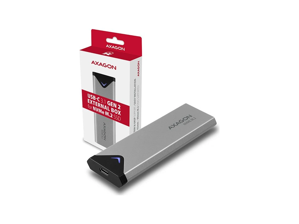 Super rychlý externí box AXAGON EEM2-UG2 s USB 3.2 Gen 2 rozhraním je určen pro NVMe (PCI-Express) M.2 SSD disky.