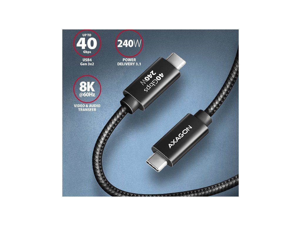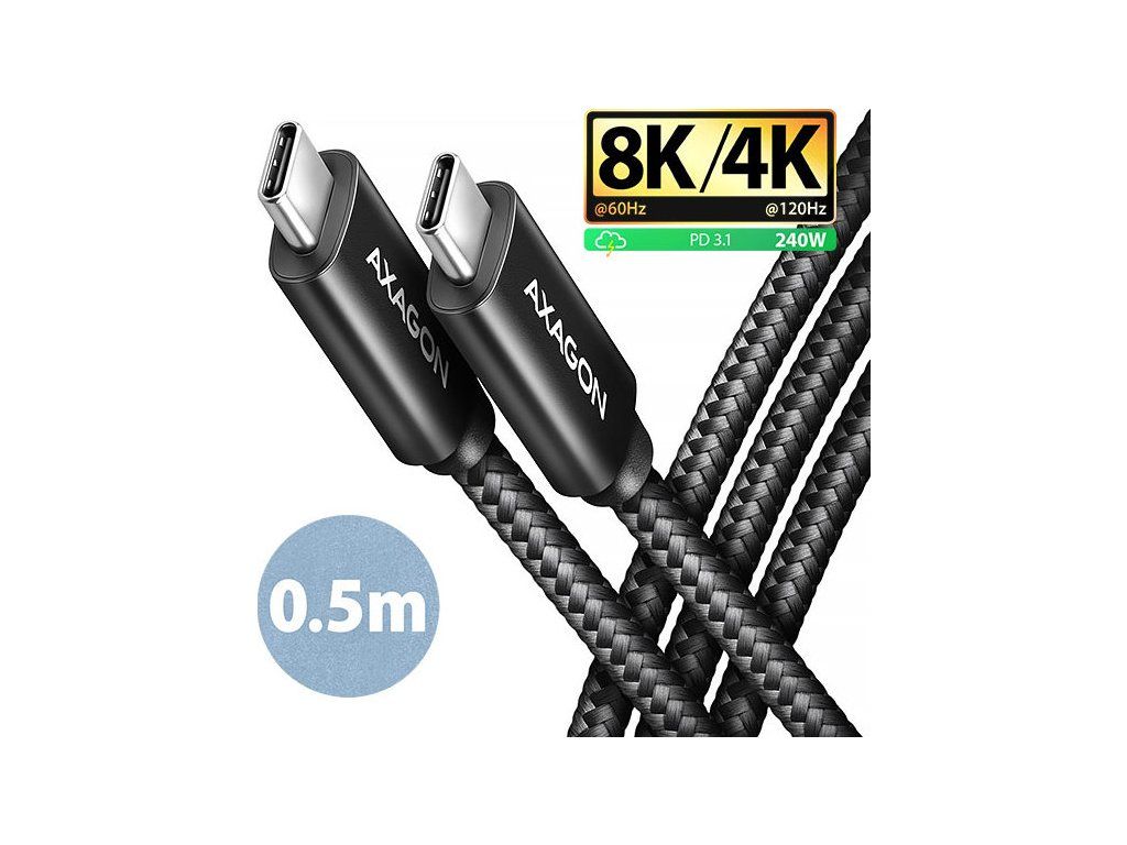 AXAGON BUCM4X-CM05AB NewGEN+ kabel USB-C <-> USB-C, 0.5m, USB4 Gen 3×2, PD 240W 5A, 8K HD, ALU,oplet