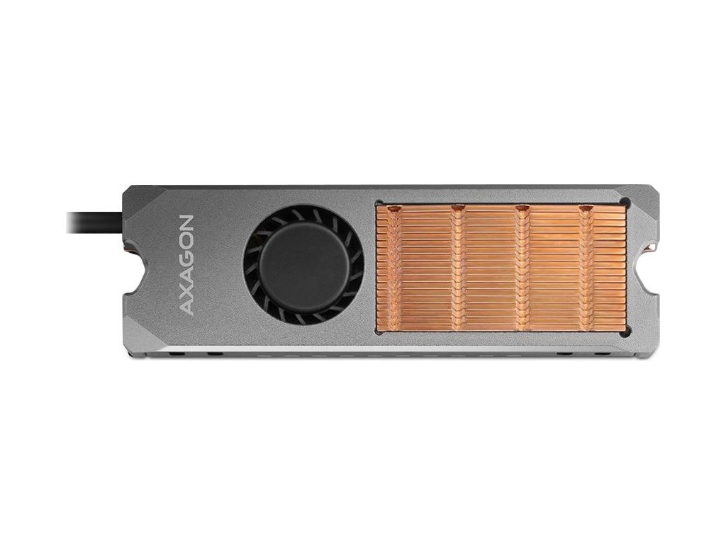 AXAGON CLR-M2FAN, měděný chladič s ventilátorem pro jedno i oboustranný M.2 SSD disk, výška 13 mm