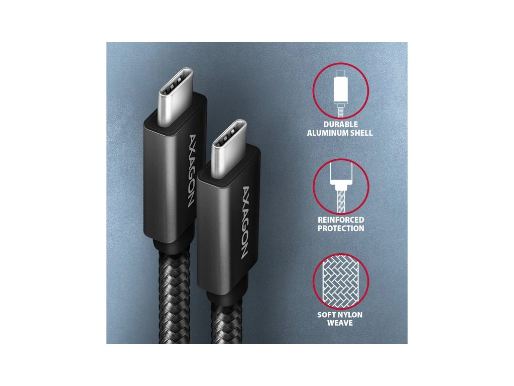 AXAGON datový a nabíjecí kabel USB-C na USB-C / USB 3.2 Gen2 / PD 100W 5A / 4k HD / ALU / oplet / 2,0 m / černý