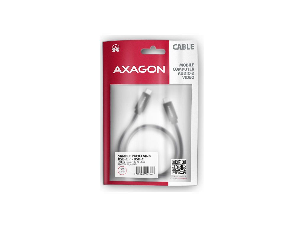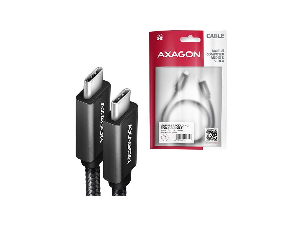 Prémiový propojovací USB-C <-> USB-C datový a nabíjecí AXAGON BUCM32-CM05AB SPEED+ USB 20Gbps (USB 3.2 Gen 2x2) kabel s konektory USB-C male na obou koncích. Kabel je navržen pro velmi rychlé datové přenosy, přenos videa a nabíjení notebooků, telefonů, tabletů a dalších mobilních zařízení výkonem až 100 W. Umožňuje také připojení monitorů, dokovacích stanic a externích SSD disků.