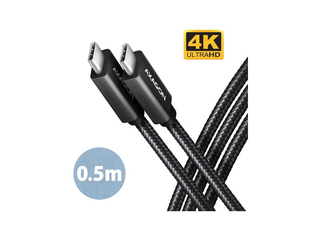 AXAGON datový a nabíjecí kabel USB-C na USB-C / USB3.2 Gen 2 / 5A / PD 100W / opletený / 0,5m / černý