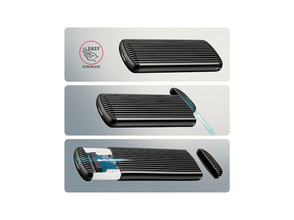 AXAGON EEM2-SC, USB-C 10Gbps externí box pro M.2 NVMe SSD, bezšroubový, žebrovaný hliník