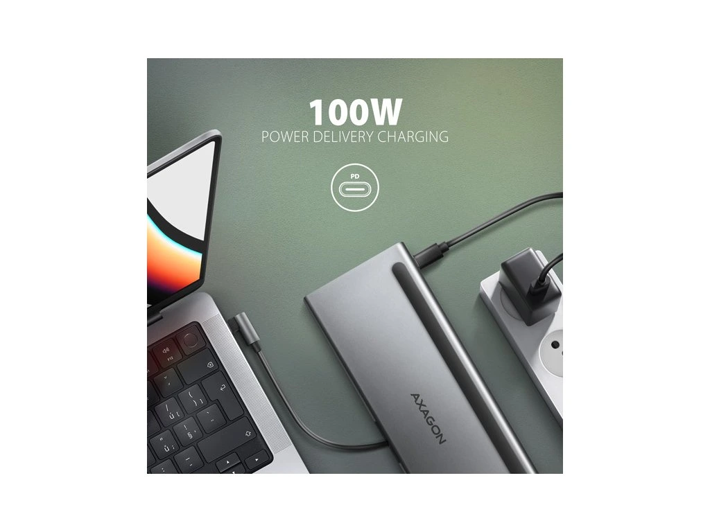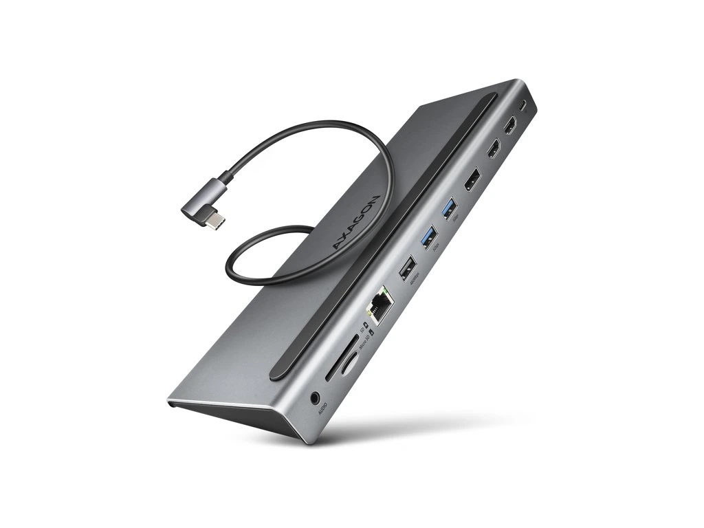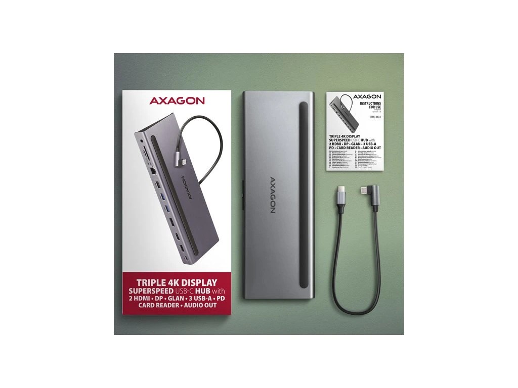 AXAGON HMC-4KX3 USB 5Gbps hub, 3x USB-A, 2x HDMI, DP, RJ-45, SD/microSD, audio, PD 100W, kabel 40cm