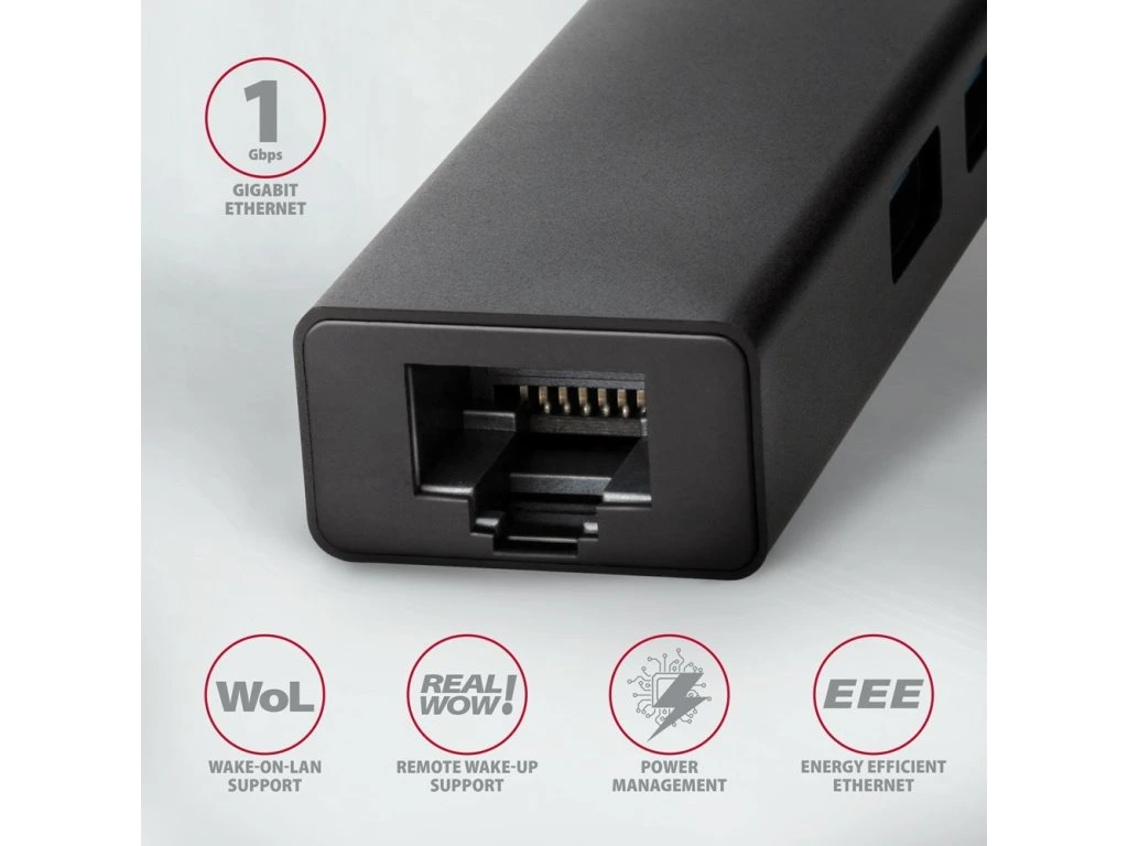 Replikátor portů je ideálním doplňkem pro ultrabooky s malým počtem USB-A portů a bez síťové karty. Rozbočovač se nezalekne ani připojení k telefonům s USB-C konektorem. K telefonu nebo tabletu tak připojíte například flash disk, klávesnici a myš. Některé telefony a tablety se systémem Android, například Samsung S9+, lze díky tomuto hubu připojit k internetu síťovým kabelem.