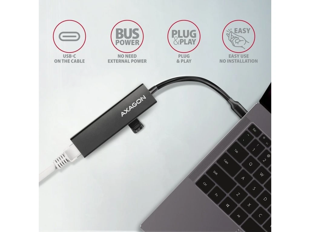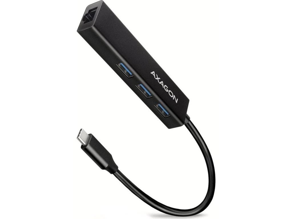 AXAGON HMC-GL3A, USB 3.2 Gen 1 hub, porty 3x USB-A + Gigabit Ethernet, kovový, kabel USB-C 20cm