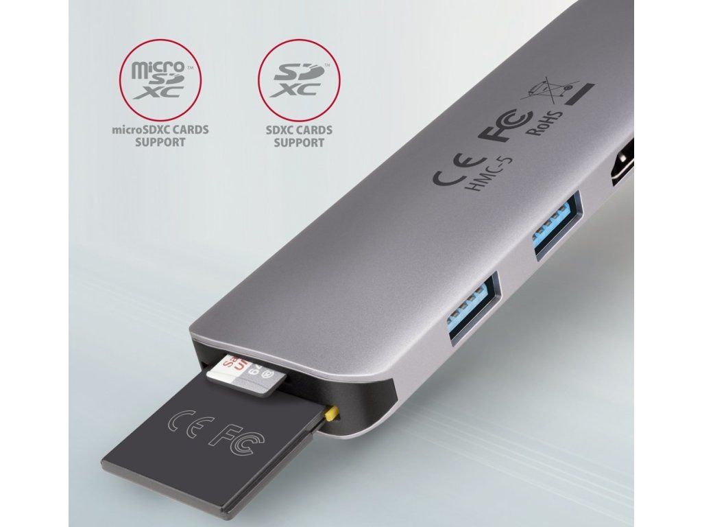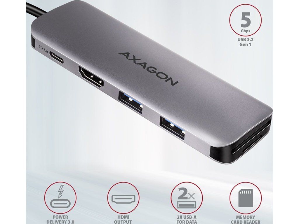 AXAGON hub USB-C / HMC-5 / USB 3.2 Gen1 / 1x USB-C / 2x USB-A / 1x HDMI / microSD/SD / 100W PD / 0,2m