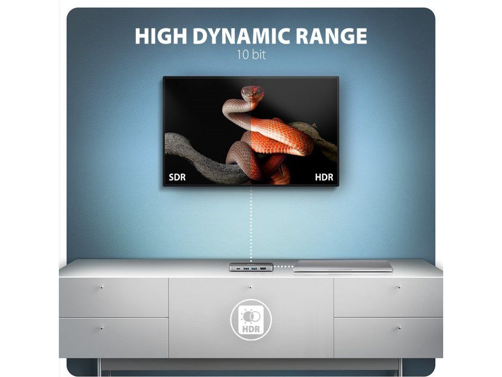 • Podpora vzorkovací frekvence až 192 kHz a až 24bitového zvuku – závisí na zdrojovém a koncovém zařízení, tj. notebooku/telefonu a TV/monitoru/AV receiveru.