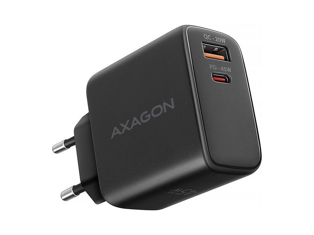 AXAGON nabíječka do sítě 45W / ACU-PQ45/ 1x USB-C / 1x USB-A / PD3.0/QC4+/PPS/SFC2.0/AFC/SCP/Apple / černá
