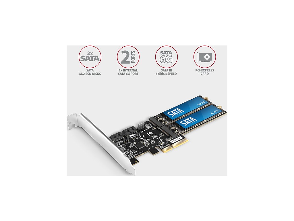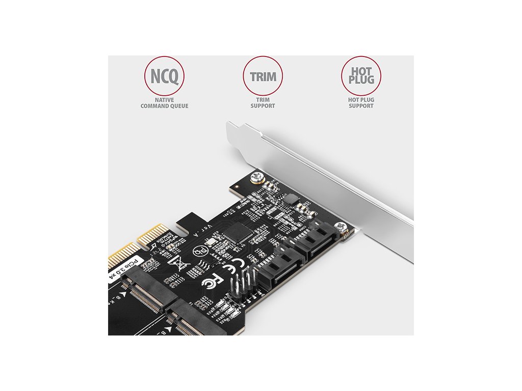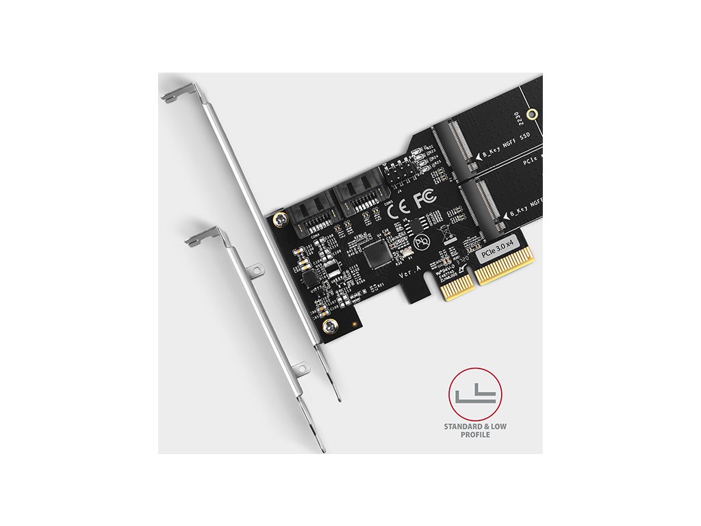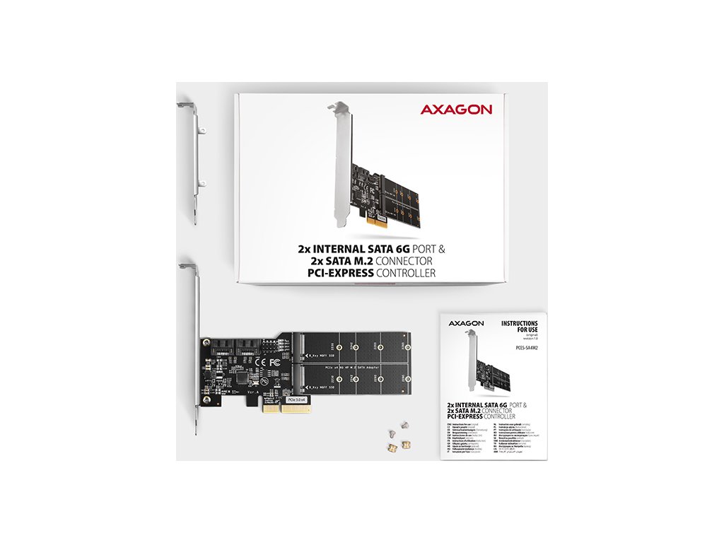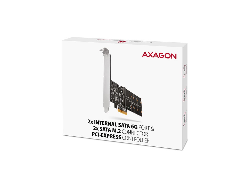 AXAGON PCES-SA4M2, PCIe řadič - 2x interní SATA 6G port + 2x SATA M.2 slot, ASM1164, SP & LP