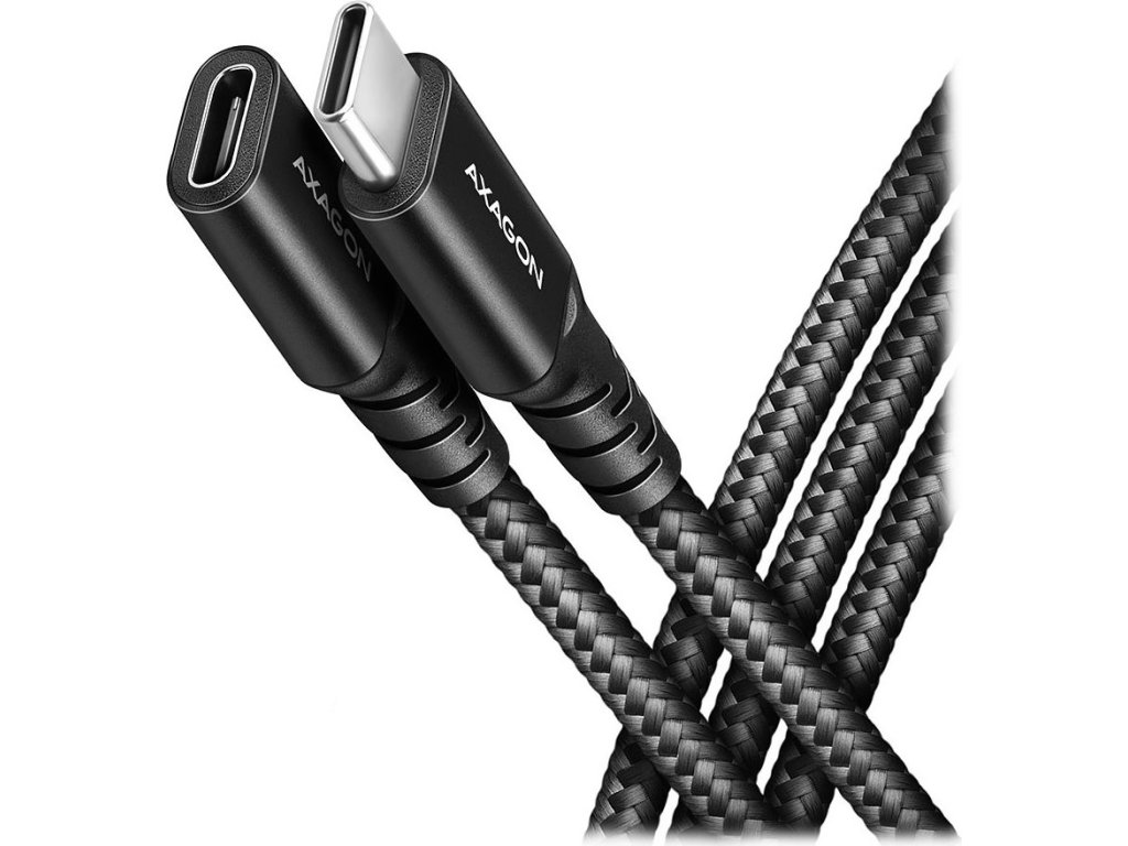 AXAGON prodlužovací kabel USB-C(M) na USB-C(F) / USB 3.2 Gen 2 / 5A / PD 240W / 8K HD / opletený / 0,5m / černý