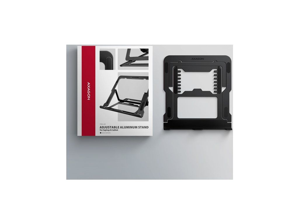 AXAGON STND-LAB je stojan na notebook či tablet, který zajišťuje pohodlí a zlepšuje ergonomii při práci. Je ideální pro zařízení s úhlopříčkou od 10" do 17.3" a umožňuje nastavení až osmi poloh. Snadno tak najdete ideální sklon stojanu pro maximální uvolnění vašich krčních a zádových svalů. Užijte si komfortní pracovní prostředí s kompaktním a přenosným stojanem, který se dokonale přizpůsobí vašim potřebám, ať už pracujete doma, v kanceláři, nebo na cestách.