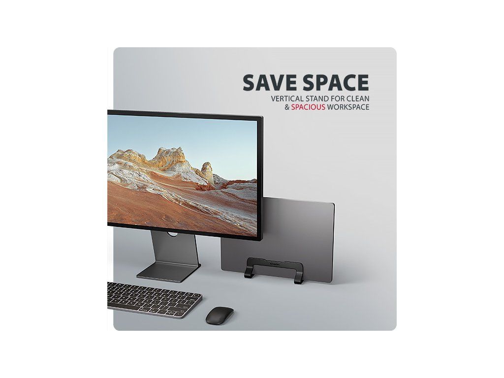 Vertikální stojan poskytuje notebooku více prostoru kolem ventilátorů, což zajišťuje účinnější odvod tepla a pomáhá udržet stabilní výkon i delší životnost zařízení. Zároveň udržuje klávesnici čistší a chrání notebook před prachem i náhodným politím, protože je zvednutý nad pracovní plochu.