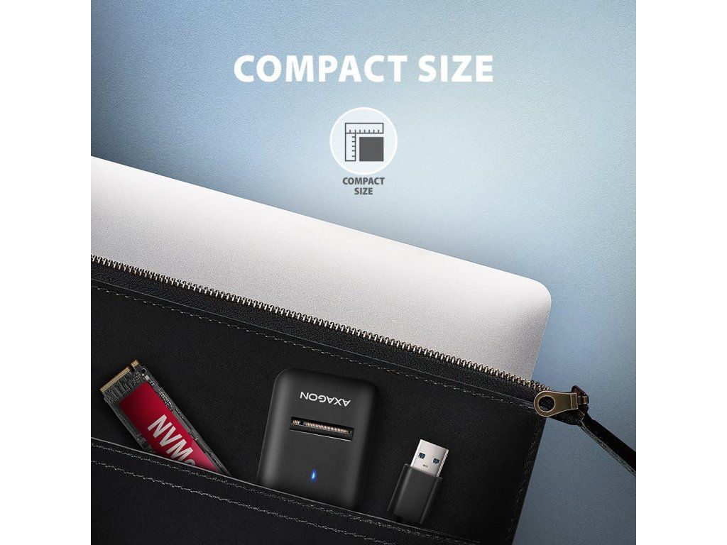 Díky malým rozměrům je adaptér vždy pohotově po ruce. Je navržen tak, aby nebránil odvodu tepla z disku, což prodlužuje jeho životnost a zároveň zabraňuje zpomalování rychlosti disku, tzv. „Thermal Throttling“. Tuto redukci z USB-A na M.2 slot lze použít jak s počítači, tak i s notebooky.