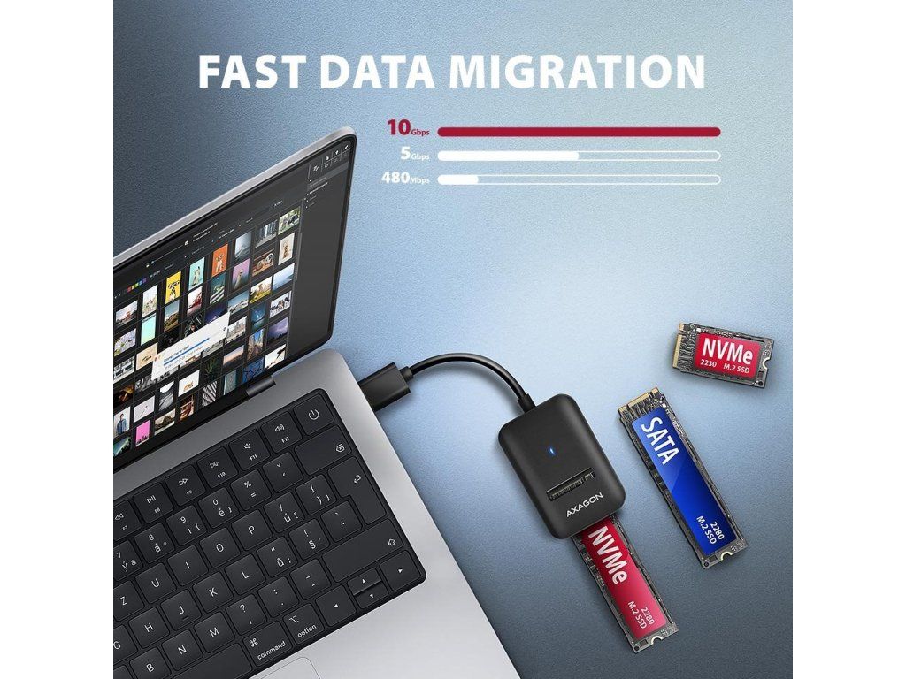 AXAGON USB-A adaptér pro připojení M.2 NVMe SSD / ADM2-AM / USB-A / USB 3.2 Gen2 / USB-A kabel 10cm
