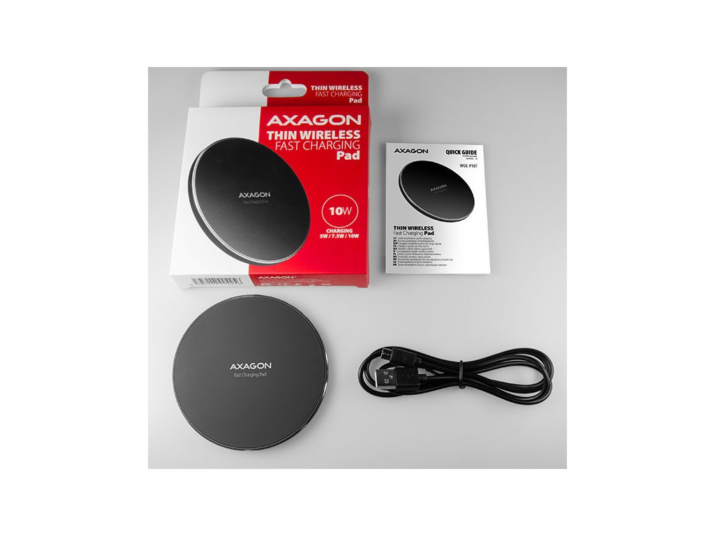 AXAGON WDC-P10T, tenká bezdrátová rychlonabíječka, Qi 5/7.5/10W, micro USB