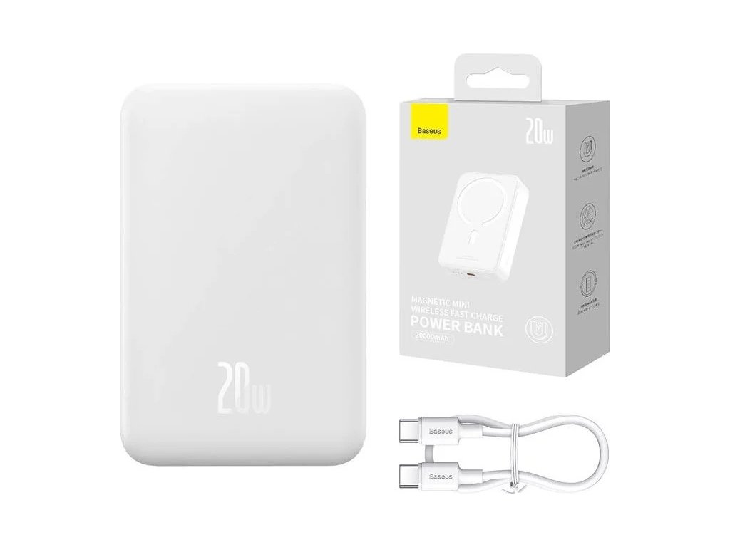 Baseus Magnetická Powerbanka 20000mAh 20W White