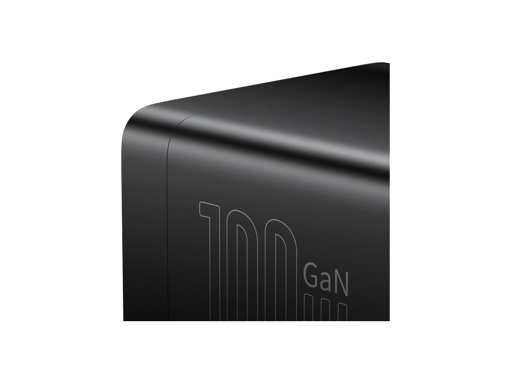 Baseus Rychlonabíječka do sítě GaN3 Pro, 2x USB-C, 2x USB + AC 100W s kabelem USB-C/USB-C černá