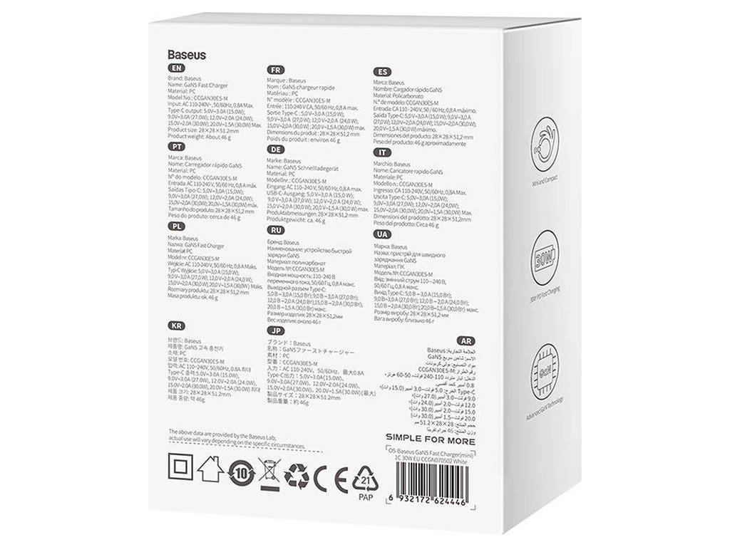 Baseus GaN5 30W mini síťová rychlonabíječka