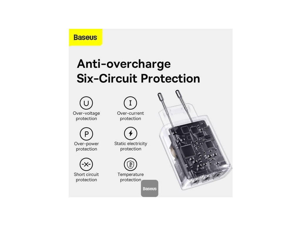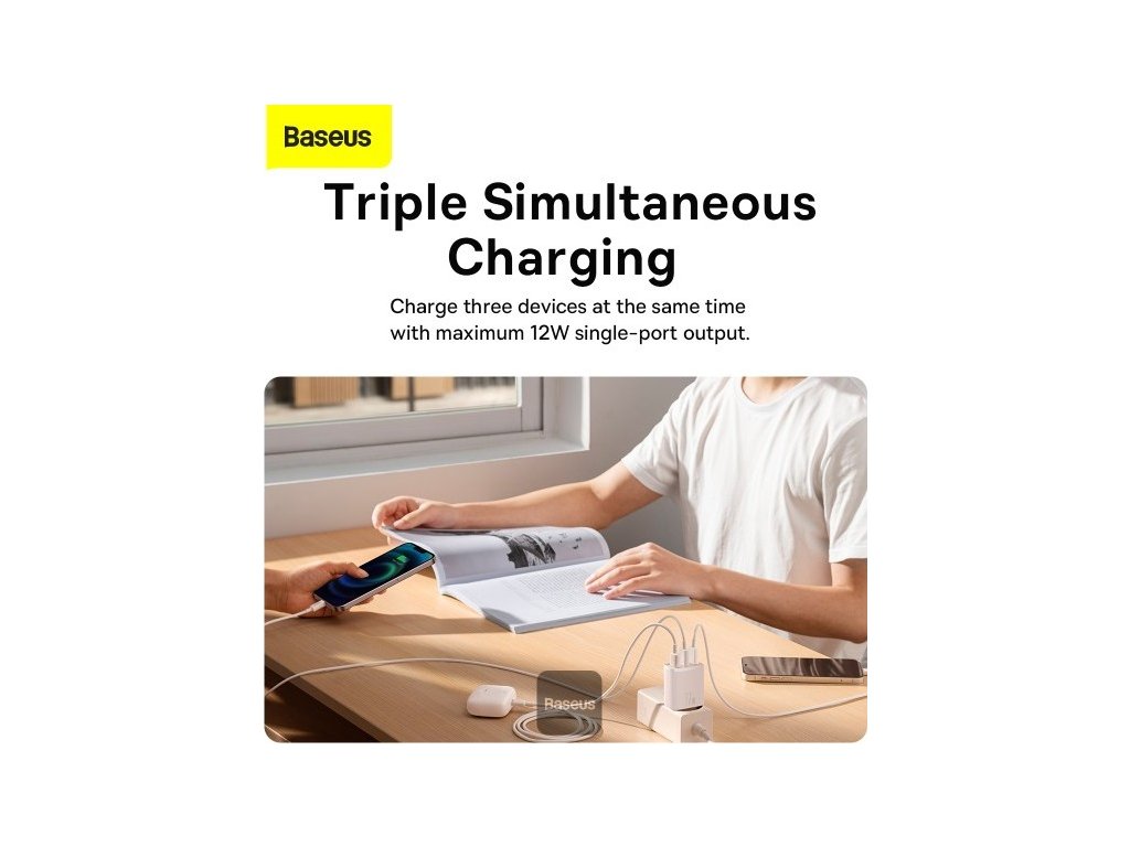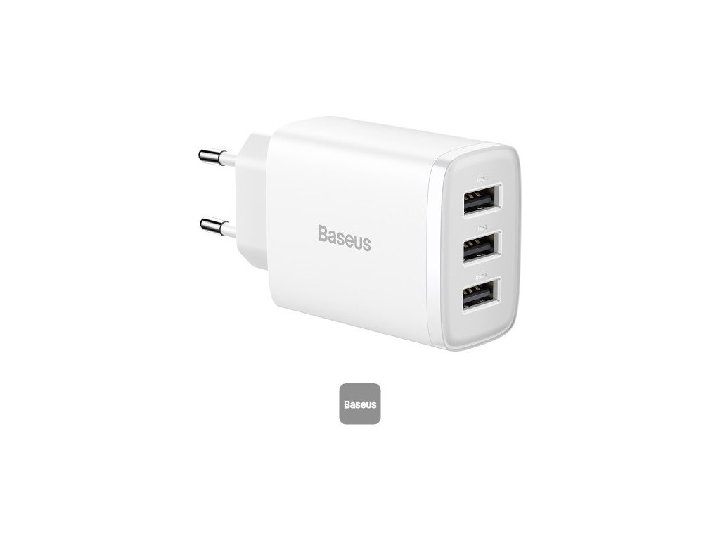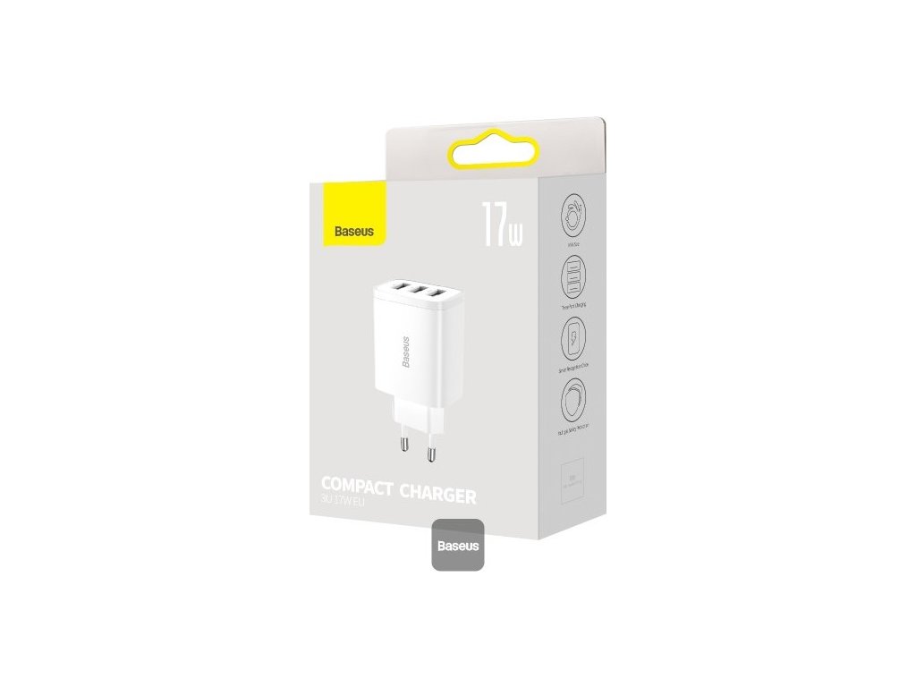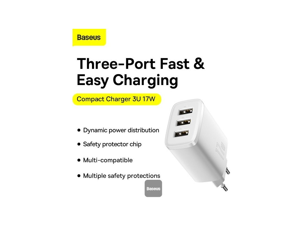 Baseus Travel Charger Compact wall Charger U+U+U, 17W EU White (CCXJ020102)